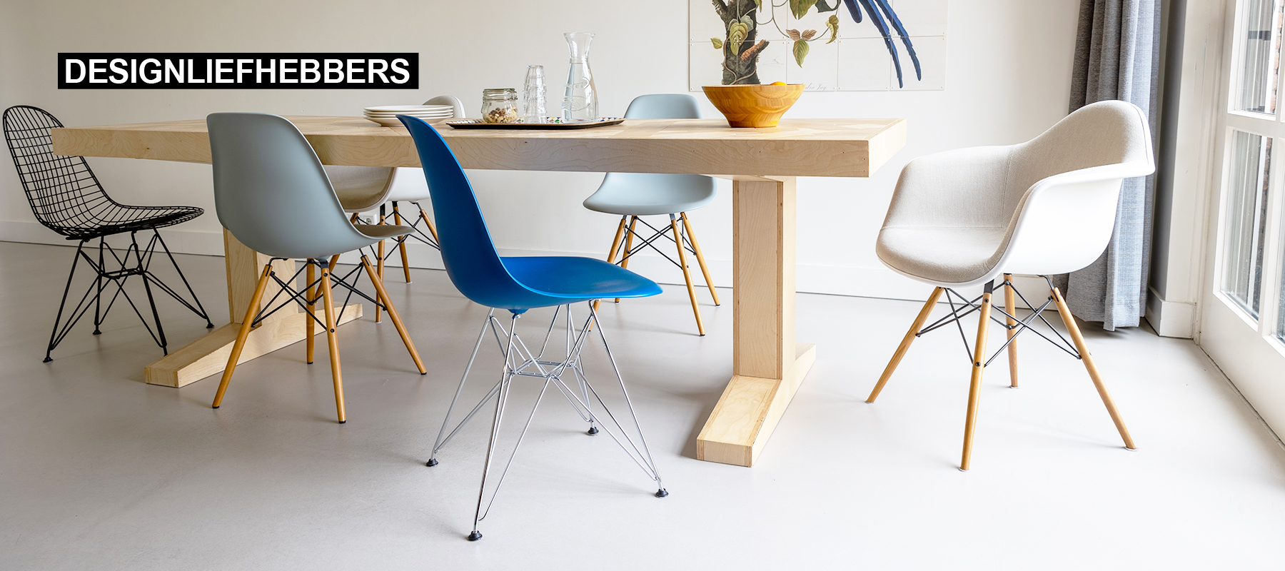 Wij zijn met name gespecialiseerd in Vitra-meubilair van het ontwerpersduo Charles en Ray Eames. Denk daarbij aan hun wereldberoemde modellen, zoals de plastic side- en armchairs. Daarnaast omvat ons assortiment vaak ook fauteuils en bureaustoelen, zoals de EA124, EA222, EA108, EA117 en EA119